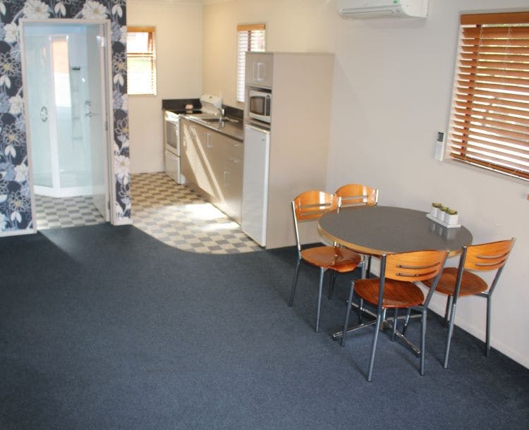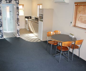 Features our largest living area which families enjoy with LCD TV and a fully self-contained kitchen with oven. Lovely ensuite bathroom with shower and hairdryer. Fibre fast Wifi - Large 2nd bedroom with 3 single beds and plenty of space